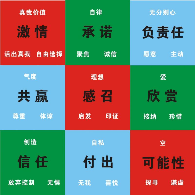 人生起点是激情,有了激情,做出承诺,采取负责任的态度欣赏身边的一切,心甘情愿的付出,信任他人,开创共赢的局面。这些过程会增添更大的激情,从而感召到更多的人参与,创造更大的可能性。因此,九点领导力是人生成功的重要素质。其主要内容包括激情、承诺、负责任、共赢、感召、欣赏、信任、付出、可能性九个方面。